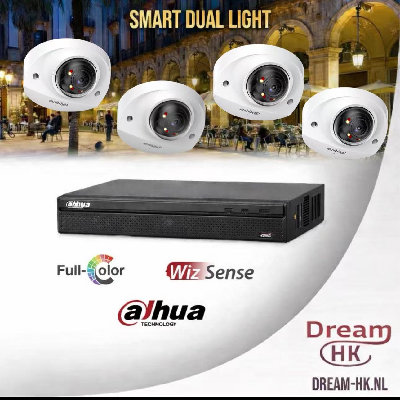4MP Dahua WizSense Full Color Smart Dual Light IP PoE beveiligingscamera systeem / 8MP 4CH IP PoE NVR (DHI-NVR1104HS-P-S3/H) + 4x 4MP IP PoE Dahua Full Color Smart Dual Light WizSense camera's (DH-IPC-HDBW2449F-AS-IL)(Ingebouwde microfoon