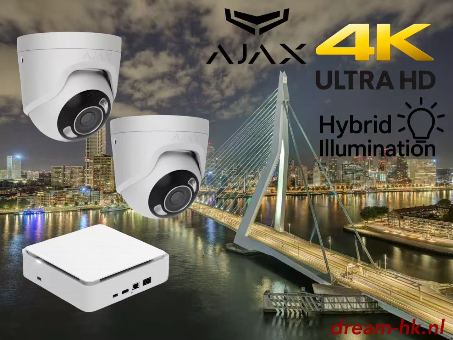 8MP Ajax Hybrid Illumination IP set / 12MP Ajax Ultra HD 4K 8CH IP NVR + 2x 8MP UHD IP PoE Hybrid Illumination camera (Ingebouwde microfoon)