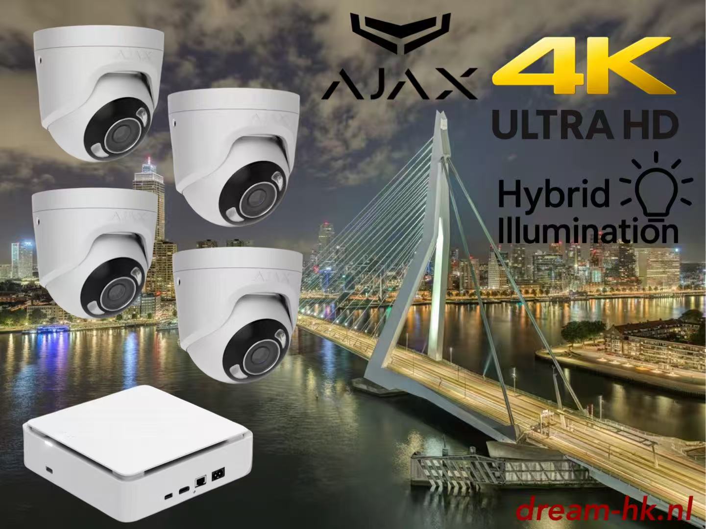 8MP Ajax Hybrid Illumination IP set / 12MP Ajax Ultra HD 4K 8CH IP NVR + 4x 8MP UHD IP PoE Hybrid Illumination camera (Ingebouwde microfoon)